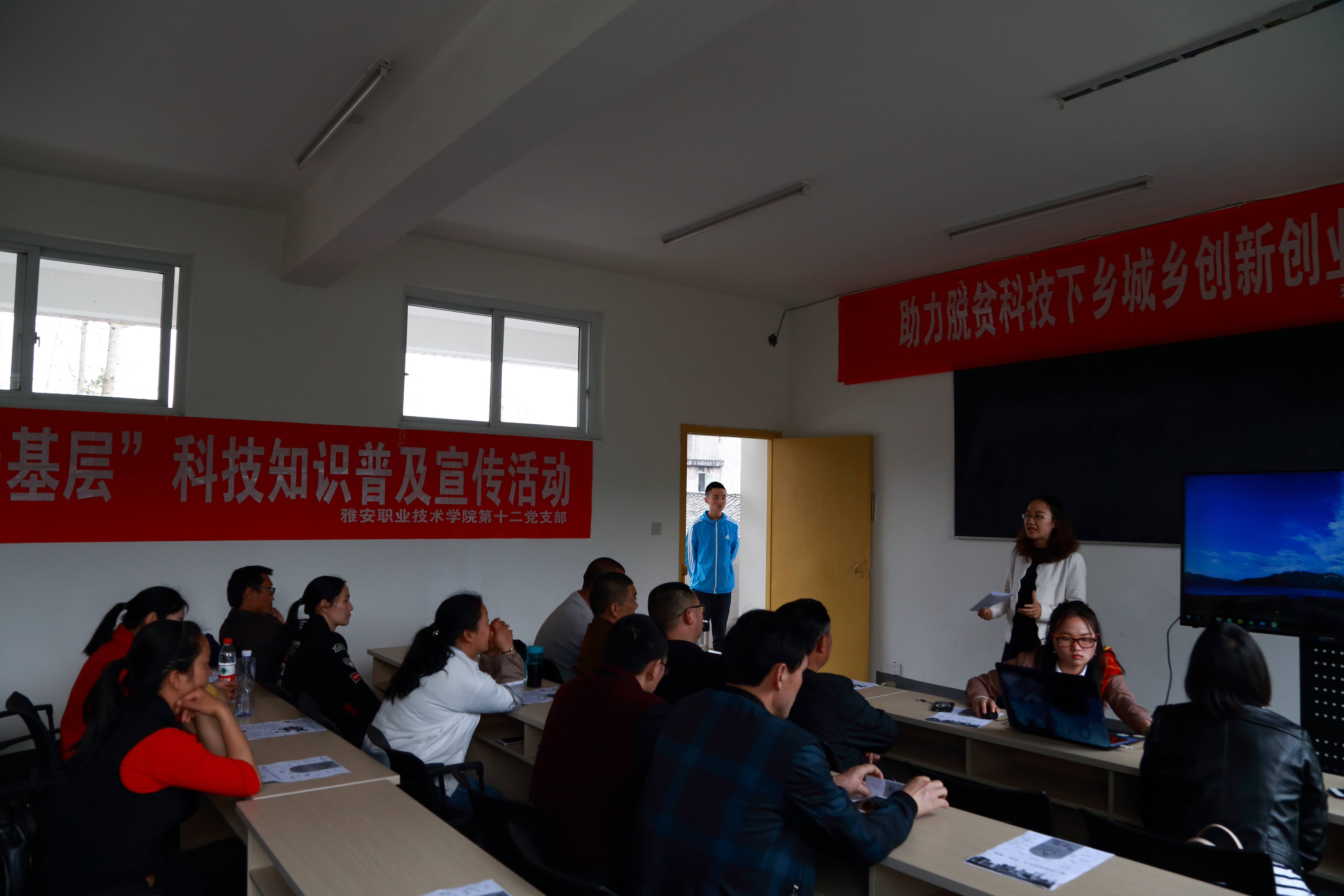 为普及科学知识,以科普扶智助力脱贫攻坚,营造城乡创新创业氛围,提高全民科学素质,3月29日中午,yl1111永利集团第十二党支部党员教师和志愿者一行22人,在雅安市名山区城东乡官田村夜校开展“走基层”科技知识普及宣传活动。