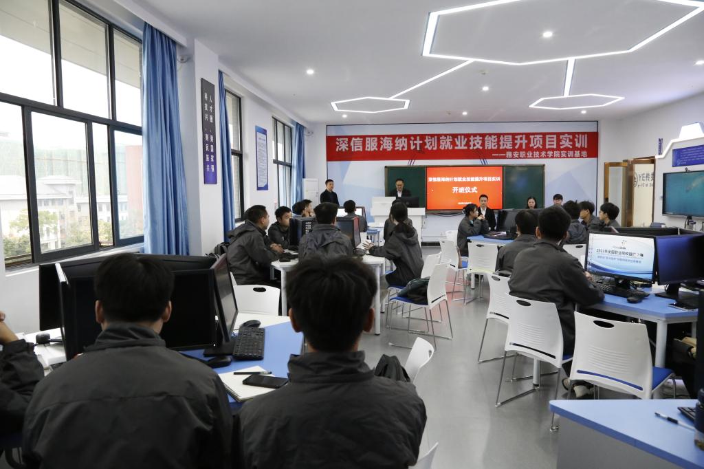 公司樊先茂副董事长首先感谢深信服将此次海纳计划技能提升项目的线下培训点设在yl1111永利集团,同时也指出“深信服海纳计划技能提升”项目是行业参与职业教育人才培养的有效载体,是公司不断提升员工实习就业满意度和人才培养质量、为信息产业提供人才支撑的新途径,后续公司将陆续开展“电信及生态企业虚拟定制班”、“移动及生态企业虚拟定制班”、“新华三及生态企业虚拟定制班”等6个虚拟定制班校企联合培养,企业提供300多个岗位计划,免费对员工进行岗位能力前置培养后,考核选拔优秀员工进入企业实习和就业。樊董事长还对参加此次培训的线下、线上员工提出了“把握培养机遇、认真学习实践、掌握过硬技能”等殷切希望。