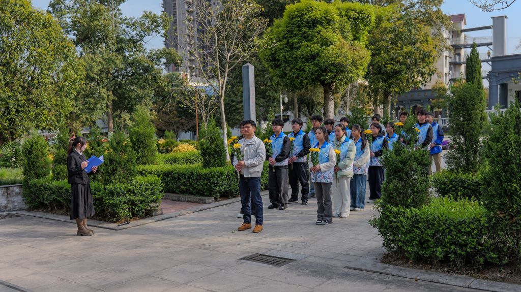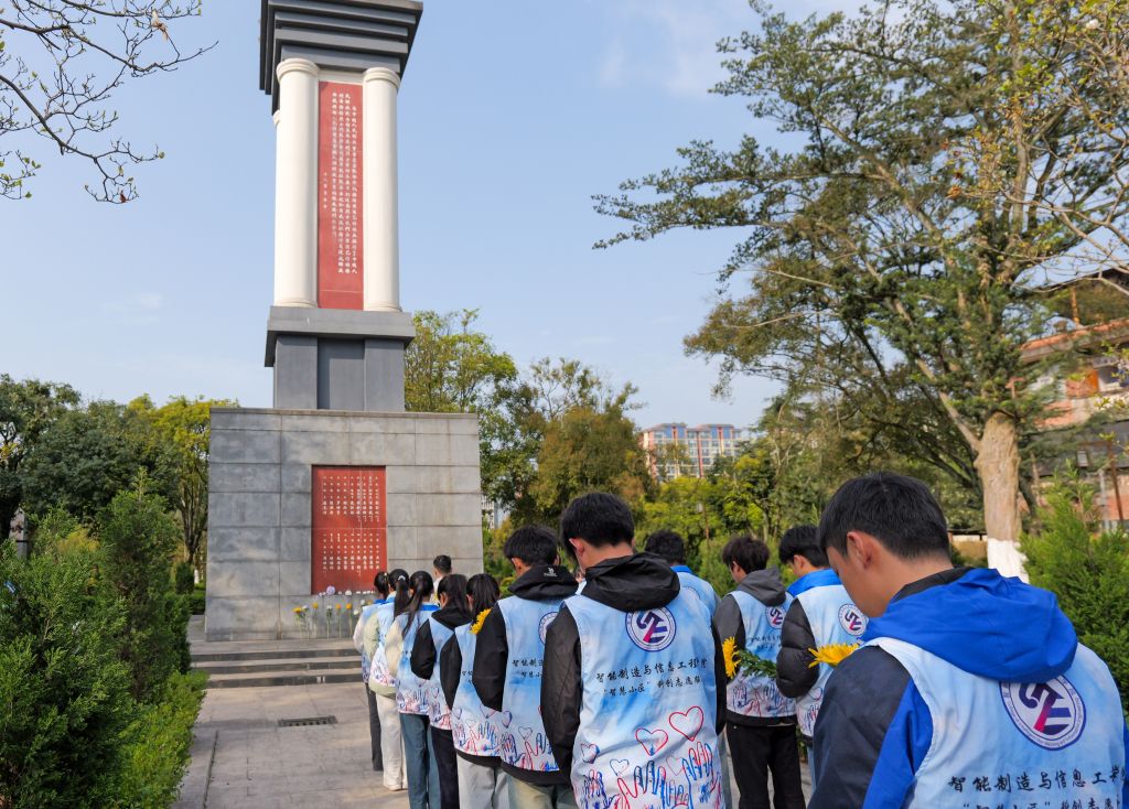 上午9时,苍松翠柏掩映下的烈士纪念碑庄严肃穆。全体师生整齐列队,向革命先烈敬献鲜花、鞠躬默哀。在员工代表领誓下,青年团员面向团旗重温入团誓词,铿锵誓言回荡陵园。随后,师生走进烈士纪念馆,通过数字化展馆、文物史料与情景雕塑,系统了解土地革命时期至新时代不同阶段的英雄事迹。