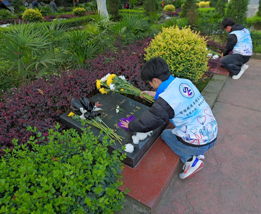"晨曦中,青年学子手持白绢俯身轻拭烈士墓碑,布帛拂过冰冷大理石的瞬间,轻声诉说着'复兴号'高铁纵横神州、'嫦娥'探月工程叩问苍穹、5G技术领跑世界的时代答卷。当年轻掌心的温热渗入斑驳的碑文,一场跨越时空的使命交接在晨露未晞的陵园悄然完成。"
