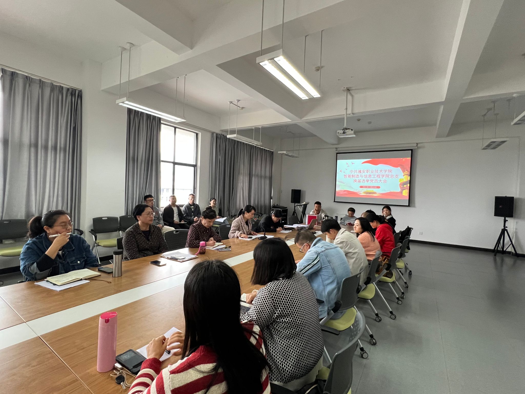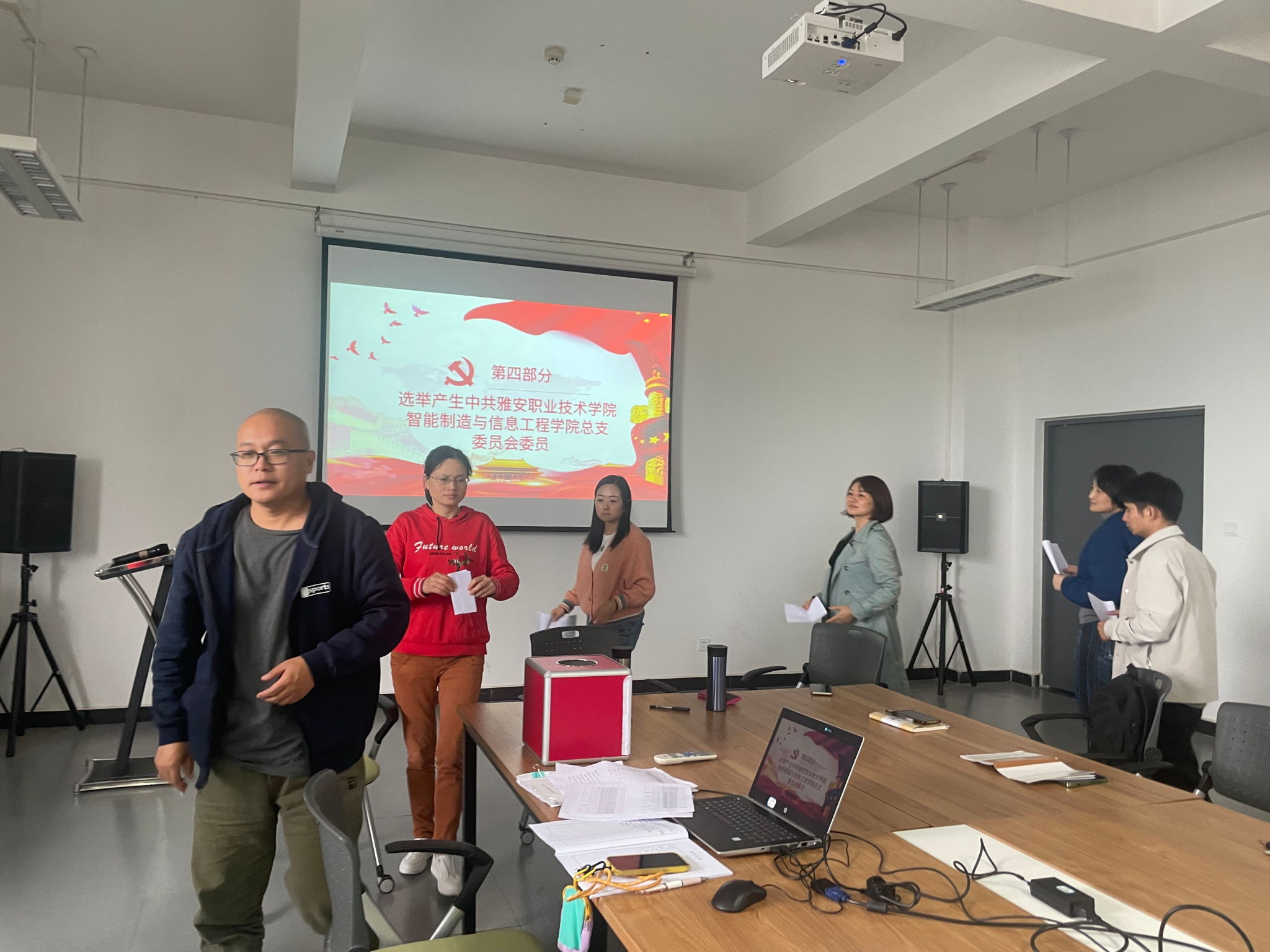 换届选举大会在庄严的国歌声中拉开了帷幕。党总支书记唐翠微同志代表上一届党支部委员会向大会作了题为《党建引领聚合力 立德树人谱新篇 》的工作报告,报告从党的建设、人才培养、专业建设、社会服务等方面系统总结了五年来的工作成效,针对当前工作中的不足,围绕立德树人根本任务,从加强党建引领,实施“五位一体”,提升育人力量;依托专业发展优势,实施“特色发展“,提升发展力量;拓宽校企合作平台,实施“合作共赢”,提升资源力量;搭建科研服务机制,实施“科研强院”,提升科技力量等方面提出了今后党总支的工作目标与思路、任务与举措。
