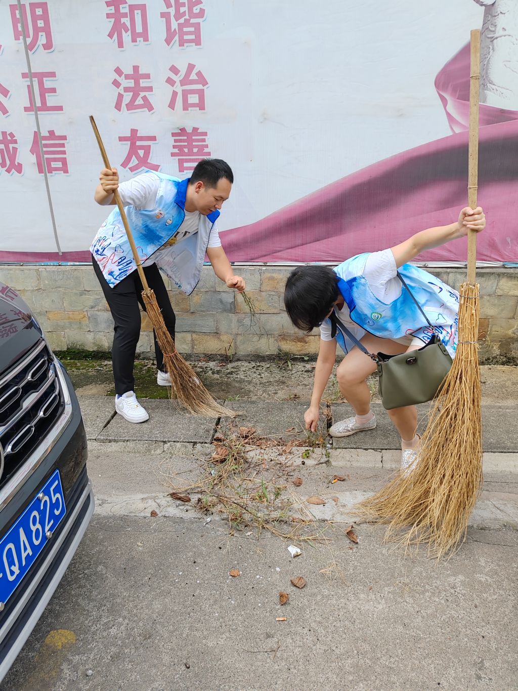 为了确保活动圆满成功,第一党支部精心筹备,提前一周与汉碑路社区协作策划了以“净化环境,点亮家园”为主题的志愿服务活动。党员教师们身着志愿服,手执扫帚、垃圾袋、夹子等清洁工具,在爱国苑小区的大门集结行动。