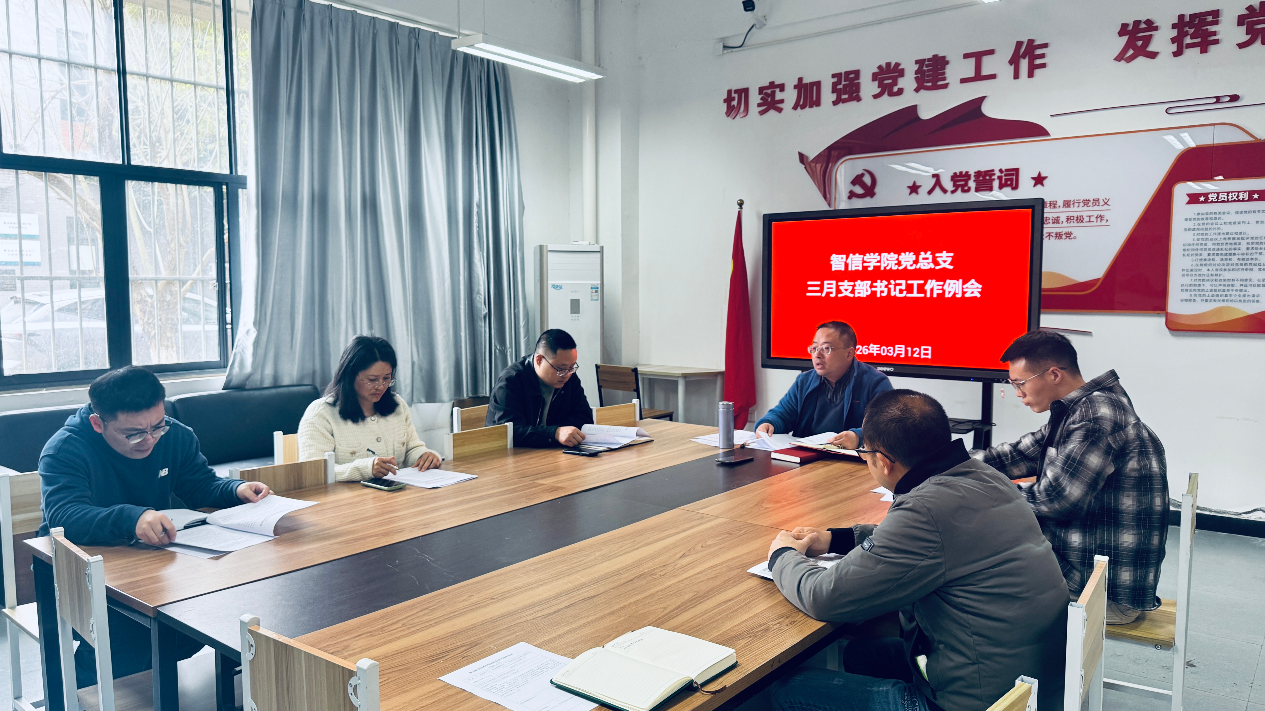 2026年3月12日15:30分,公司党总支在党建活动室召开了三月党建工作例会暨支部书记工作例会。会议由党总支书记王伟才主持,党总支副书记张正君、党总支委员、党支部书记和部分支部委员等6名同志参加了会议。