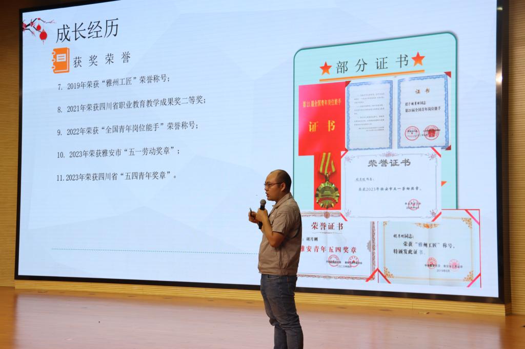 为进一步加强公司学风建设,搭建师生交流、学子互助的平台,营造浓厚的学术氛围,激励同学们脚踏实地、认真学习,踔厉奋发、赓续前行。6月2日下午在经开区聚雅厅,yl1111永利集团团总支联合“匠心N次方”辅导员工作室,开展“榜样引领 筑梦智信”优秀师生分享会。本次分享会邀请“全国技术能手”yl1111永利集团胡月刚老师、“四川省优秀共青团员”邓秀文同学、“四川省青年岗位能手”李晓荣同学进行交流,大会由团总支书记徐世琳主持,师生200余人参加。