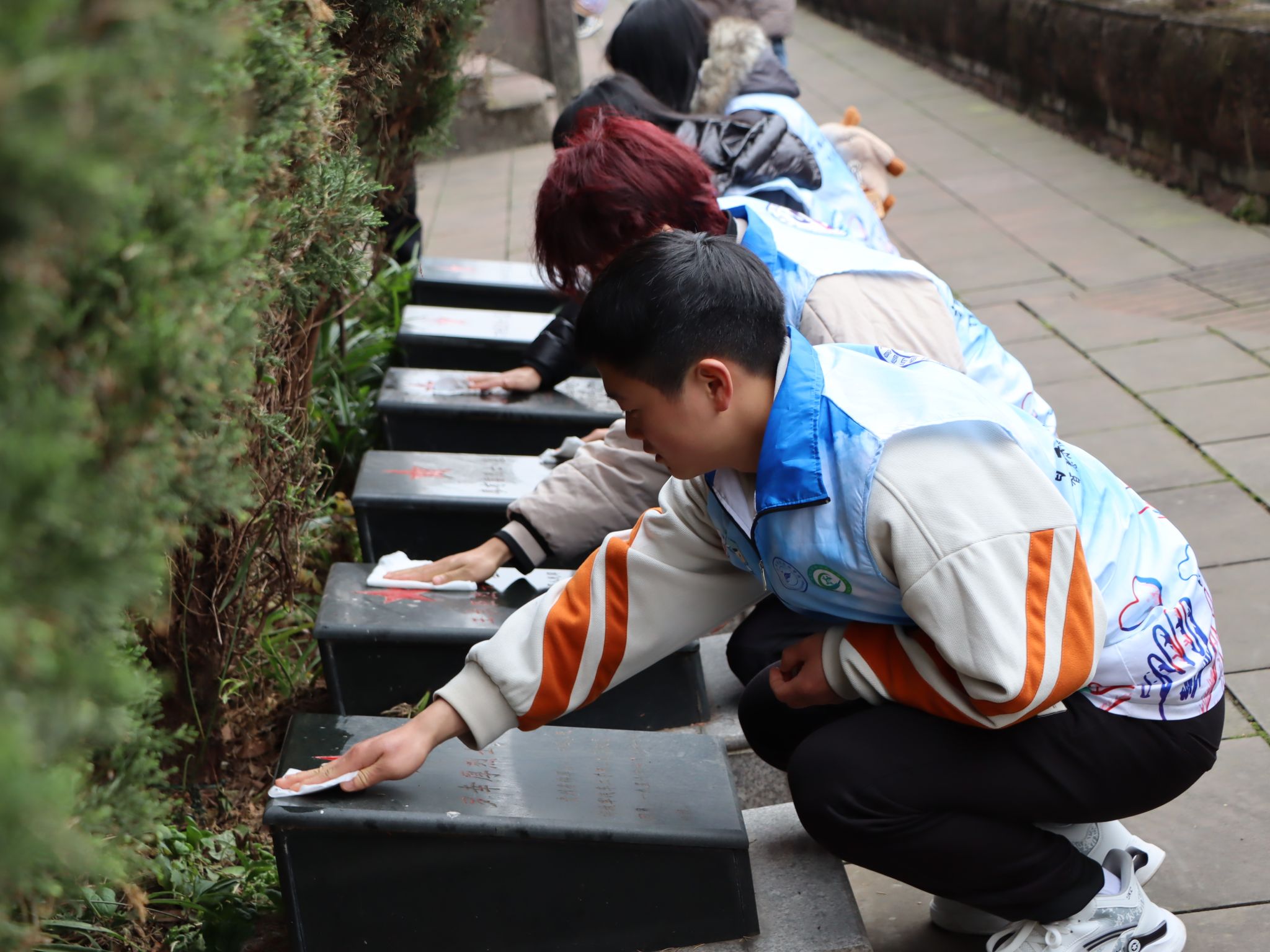 活动开始,同学们瞻仰烈士纪念碑,缅怀先烈丰功伟绩;参观烈士纪念馆,重温革命先辈的感人事迹,大家深深体会到现在的幸福生活来之不易。接下来同学们自发的清扫烈士陵园,为革命烈士擦拭墓碑,纷纷表示要循着先烈的足迹,以更加昂扬的斗志、奋发有为的精神,好好学习、练就过硬技能,更好地服务产业发展。