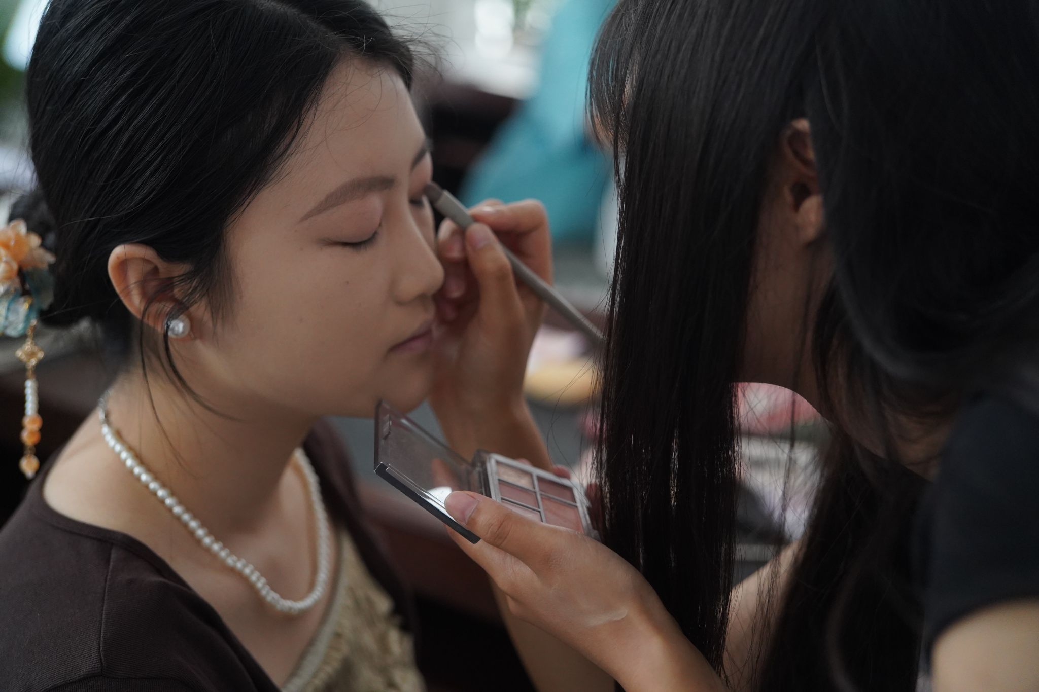 在这场盛大的妆造盛宴中,参赛者们伴随着歌舞的律动,如同艺术家一般,用化妆刷和造型工具在模特的面容上挥洒着创意。他们以“国风新中式”与“碎钻白天鹅”为主题,巧妙地融合了传统与现代元素,创造出一系列既古典又时尚,既纯洁又优雅的形象。这些造型不仅展现了中国传统文化的深厚底蕴,更体现了现代审美的创新精神和独特魅力。